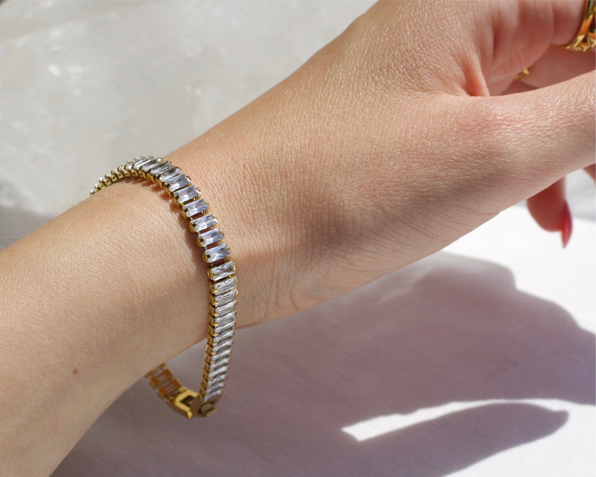 The Naomi Crystal Bracelet is a stunning piece that radiates elegance and sophistication. Featuring sparkling crystals, this bracelet adds a touch of glamour and charm to any outfit. The delicate yet eye-catching design makes it perfect for both everyday wear and special occasions.