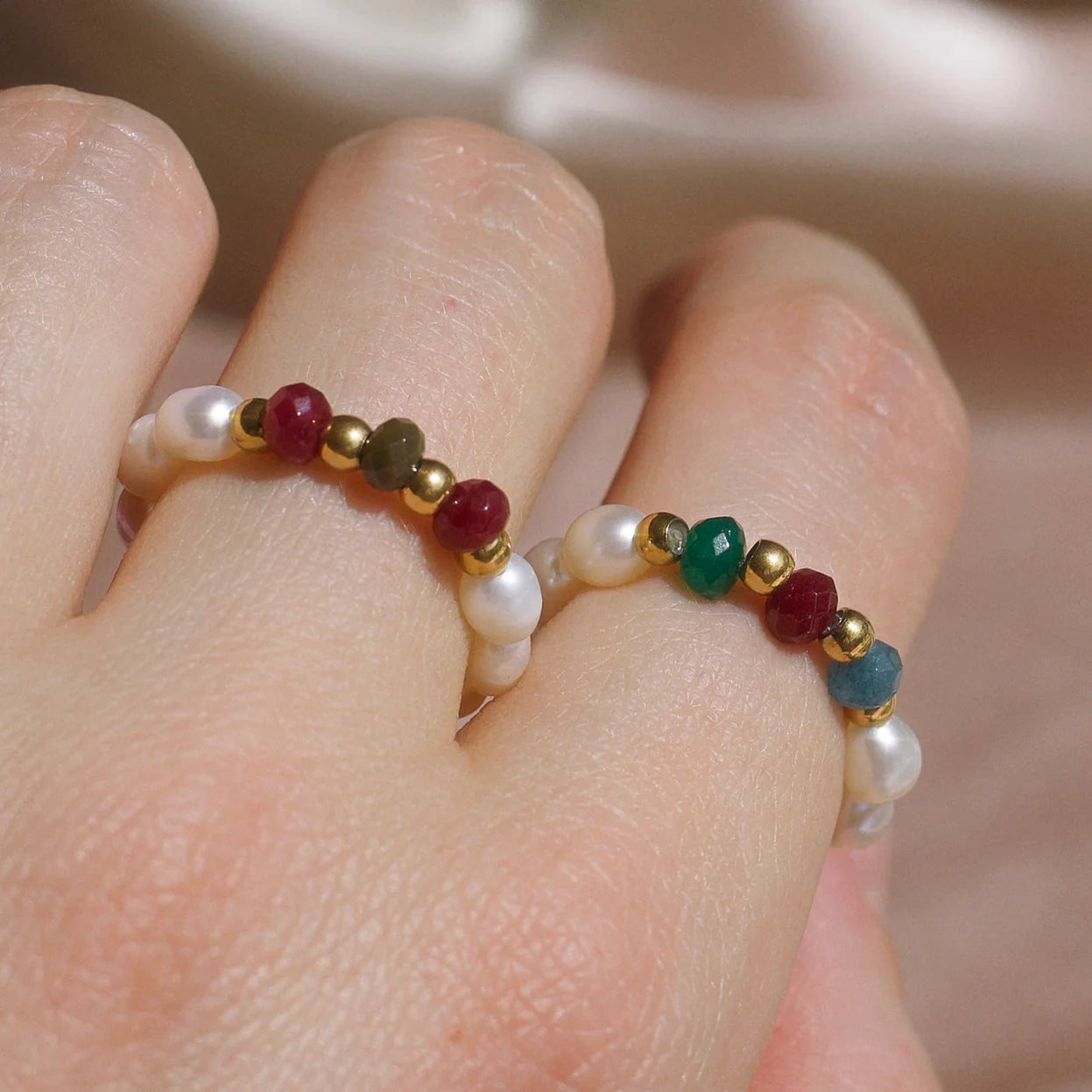The Venus Beaded Pearl Ring is a stunning fusion of elegance and modern design. Featuring a delicate combination of lustrous pearls and intricate beaded detailing, this ring exudes sophistication and timeless charm. The smooth, polished pearls are set within a beaded band that creates a refined yet eye-catching piece, perfect for adding a touch of luxury to any look.